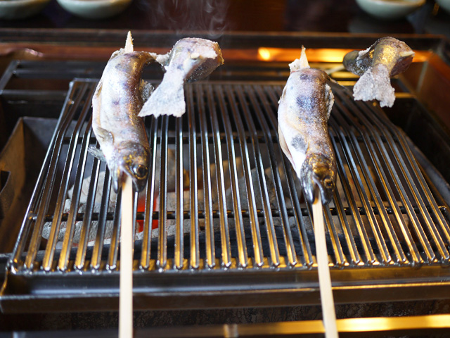 黒茶屋:山女魚を焼く